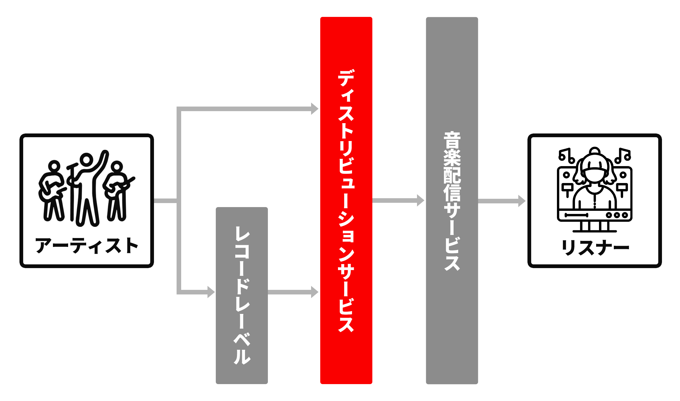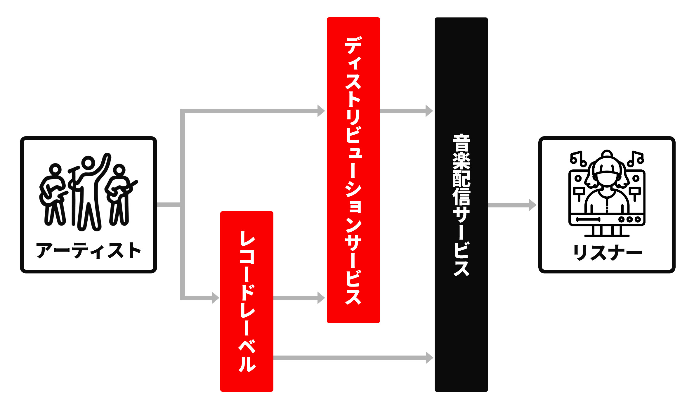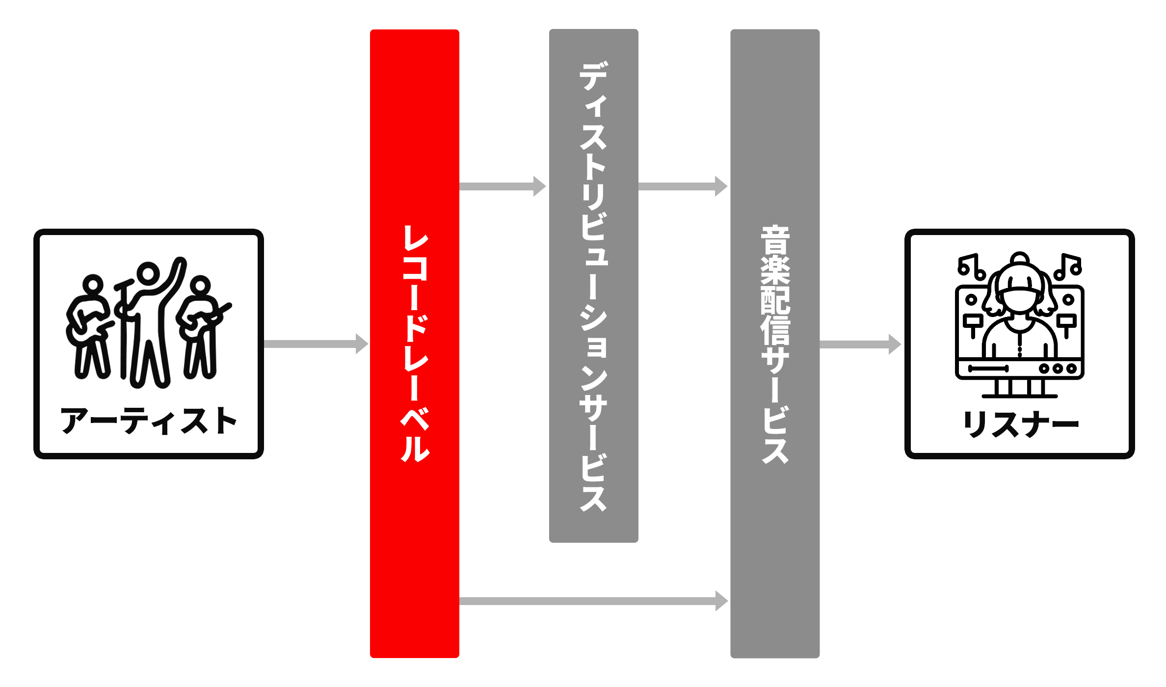 従来、アーティストの楽曲をリスナーへ届ける際は、レコードレーベルが制作・販売・宣伝を担い、レーベルを通じて音楽配信サービスへ音源を提供するのが一般的でした。
